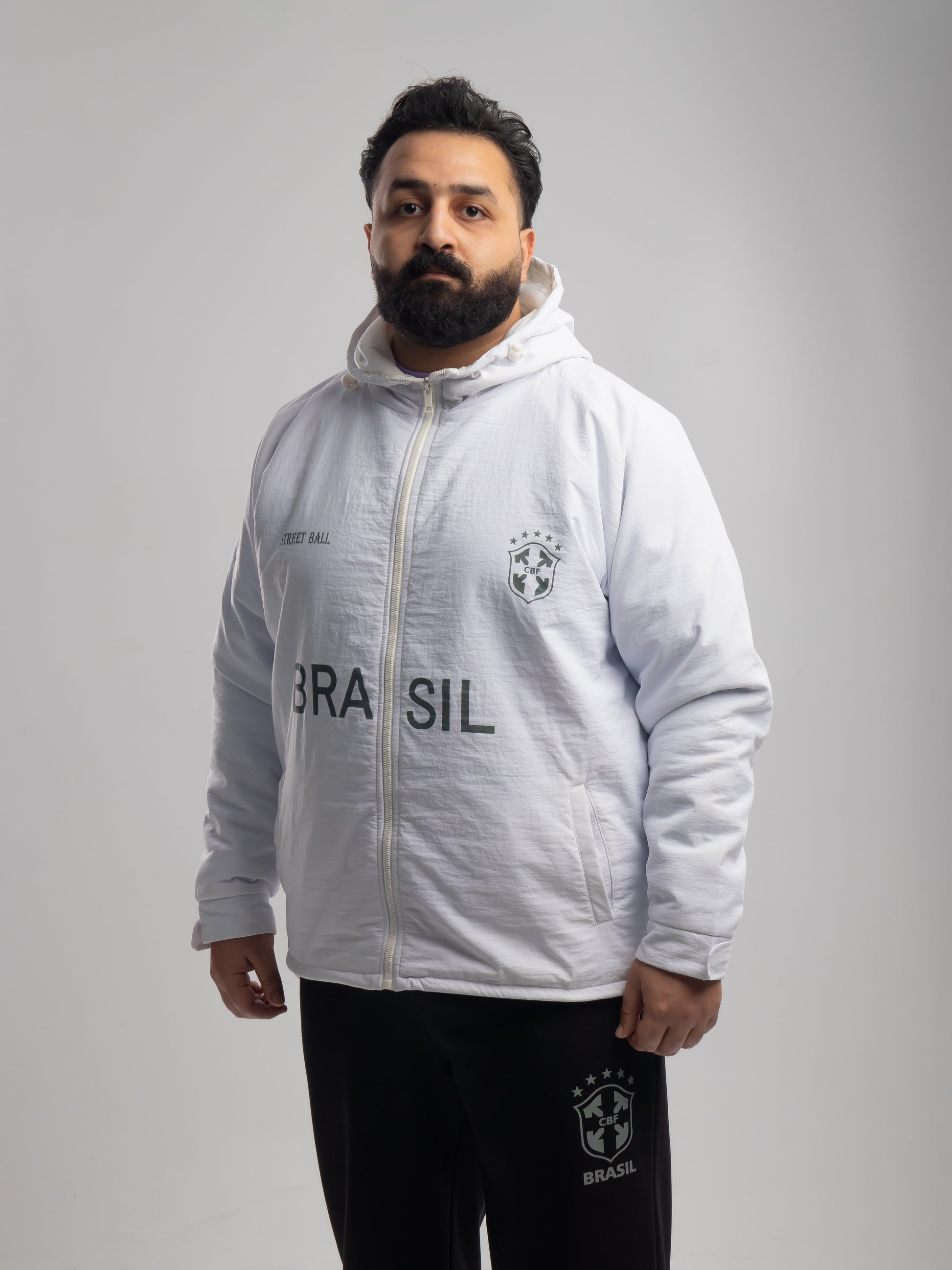 This two-piece set is engineered for versatility. Whether you're hitting the streets or the stands, the combination of a technical windbreaker and heavy-duty fleece pants ensures you stay dry and warm.